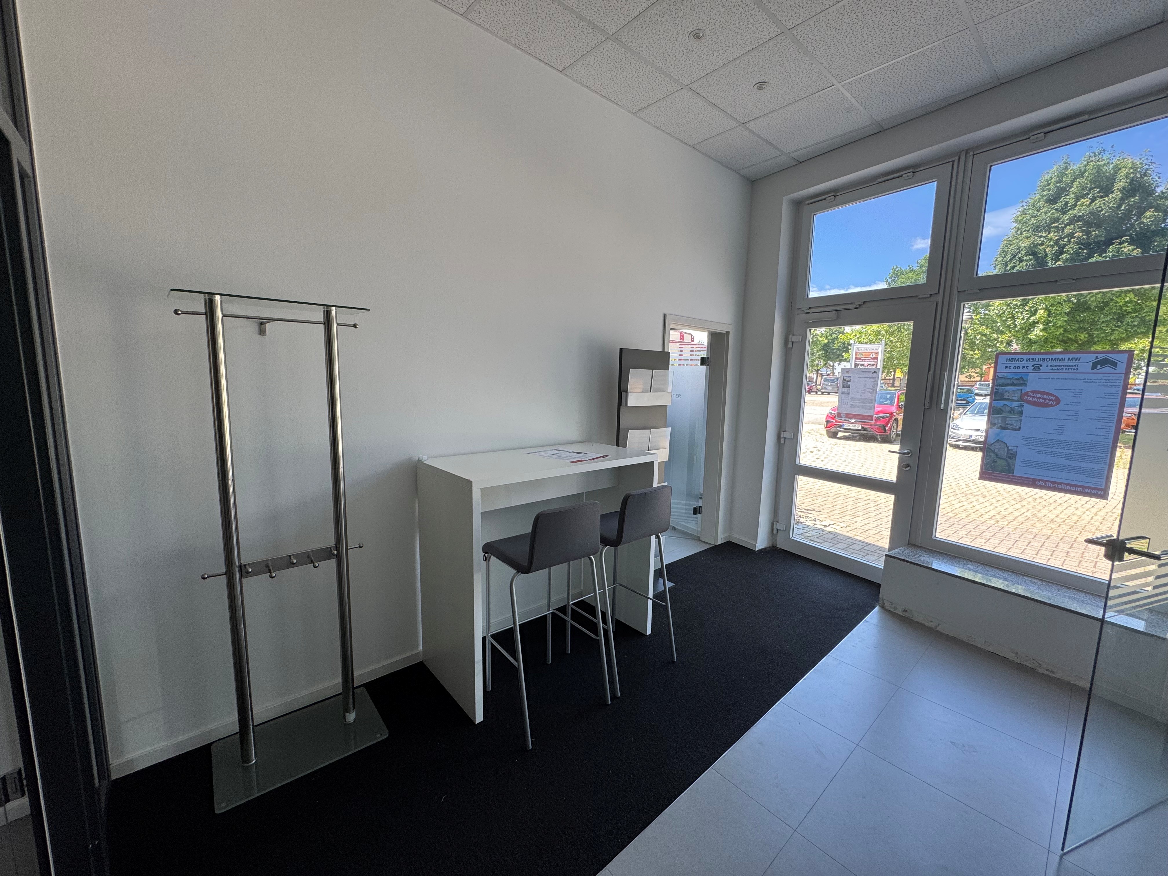 Diese Gewerbeeinheit befindet sich im Stadtzentrum von Döbeln direkt gegenüber dem größten innerstädtischen Parkplatz in der Nähe des Niedermarkts. Die meisten Besucher und Kunden von Döbelns Innenstadt parken hier, um die Stadt zu erkunden.