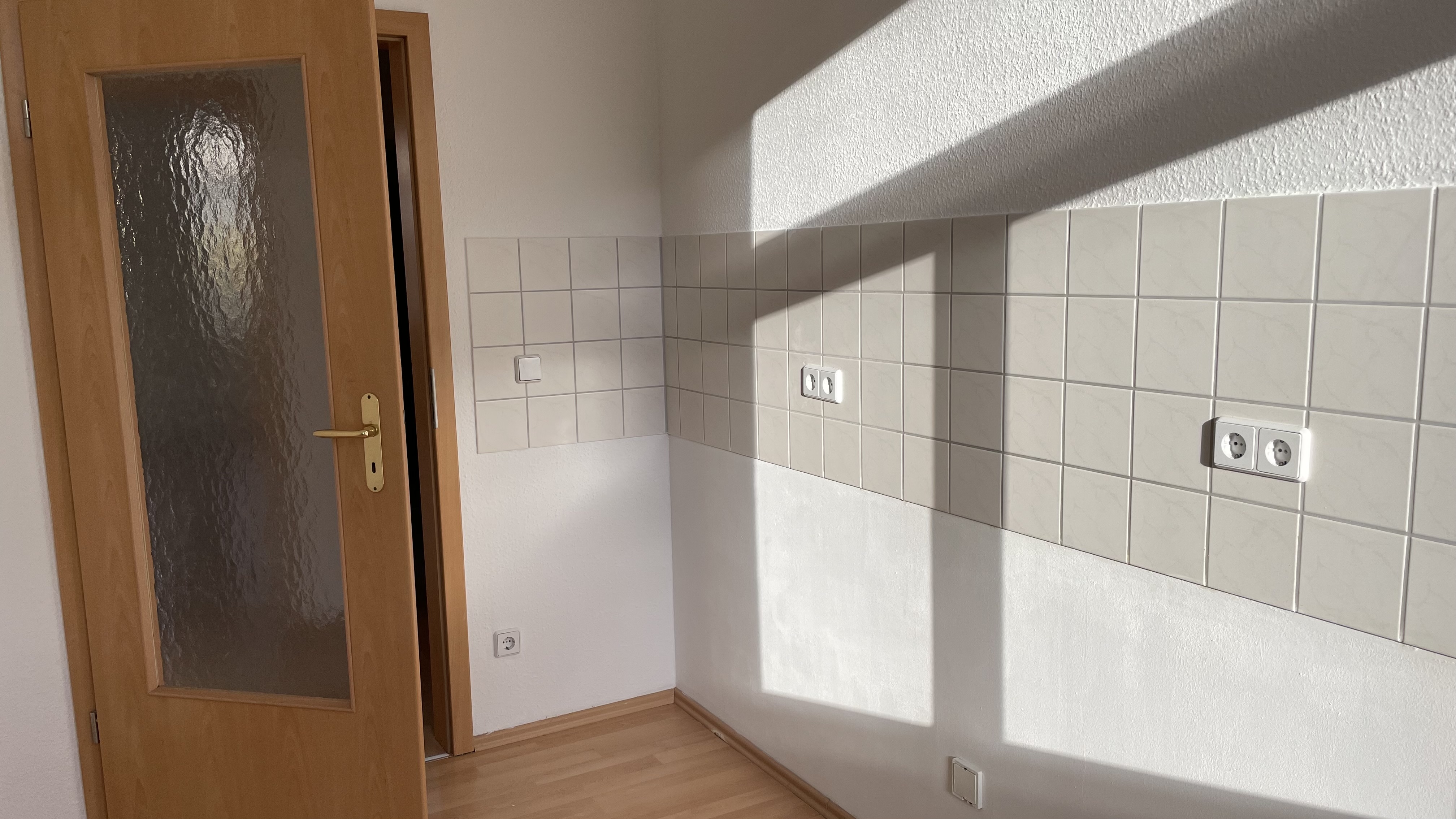 Das Bad mit Fenster wurde gefliest und mit Badewanne, Handtuchheizkörper und Waschmaschinenanschluss ausgestattet. Alle anderen Räume wurden mit Laminat versehen.