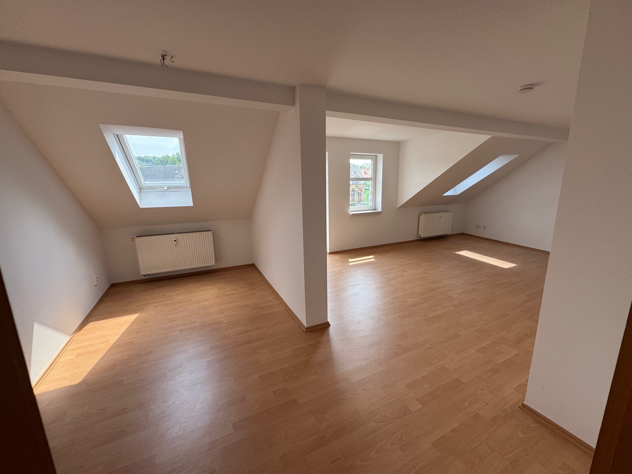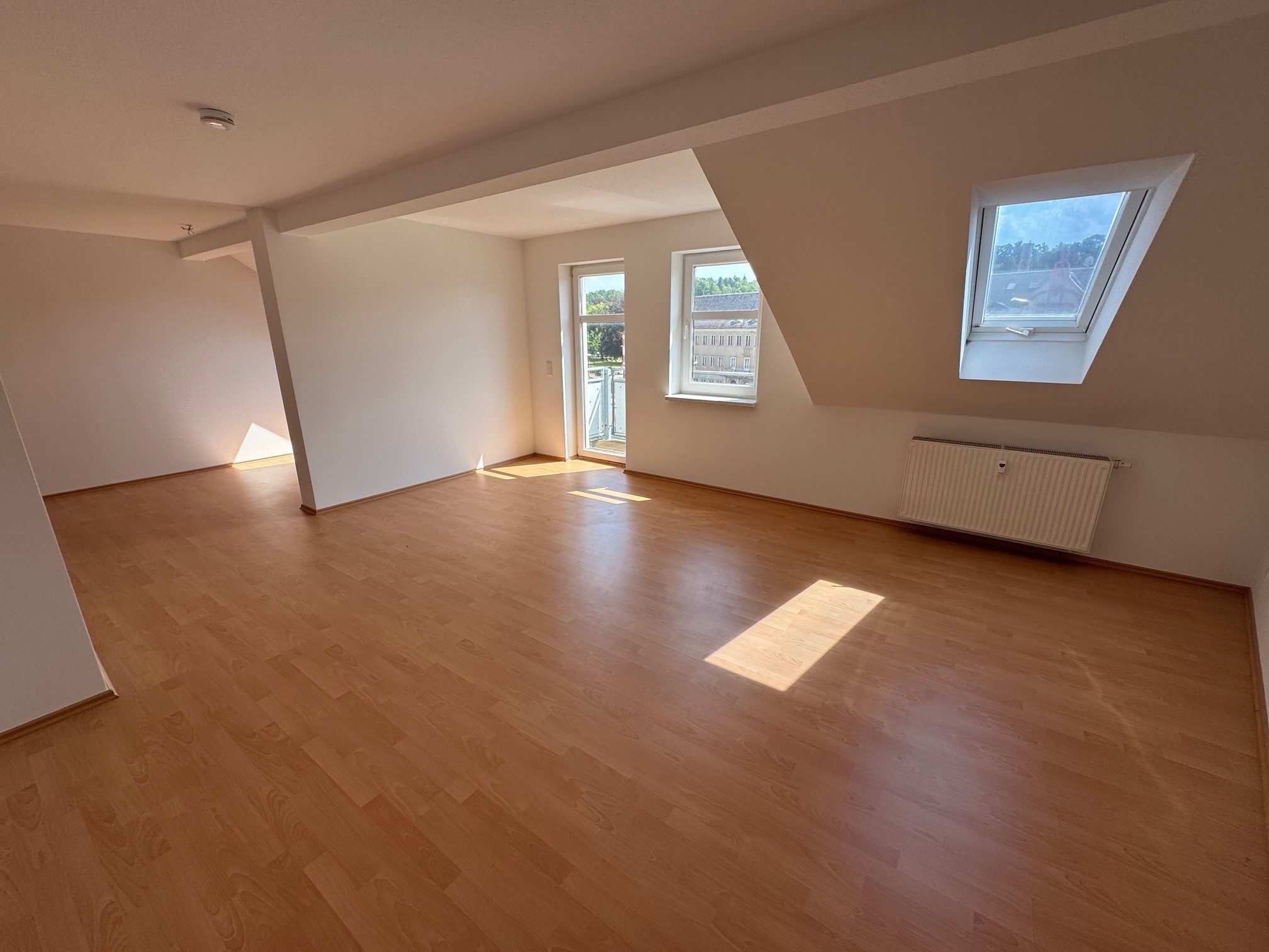 Die bezugsfertige 2-Raum-Wohnung befindet sich im Dachgeschoss eines gepflegten 4-Familienhauses in zentraler aber ruhiger Lage im Theaterstraßenviertel. Sie unterteilt sich in ein großzügiges Wohnzimmer mit Zugang zum sonnigen Balkon, Schlafzimmer, Küche, Flur und ein innenliegendes Bad mit Badewanne und Waschmaschinenanschluss. Die Wohnräume wurden mit weißer Raufasertapete und pflegeleichtem Laminatboden ausgestattet. Vom Balkon bietet sich ein romantischer Blick über den Nebenarm der Freiberger Mulde. Durch die Ausrichtung des Gebäudes ist die Wohnung sonnig warm und hell.