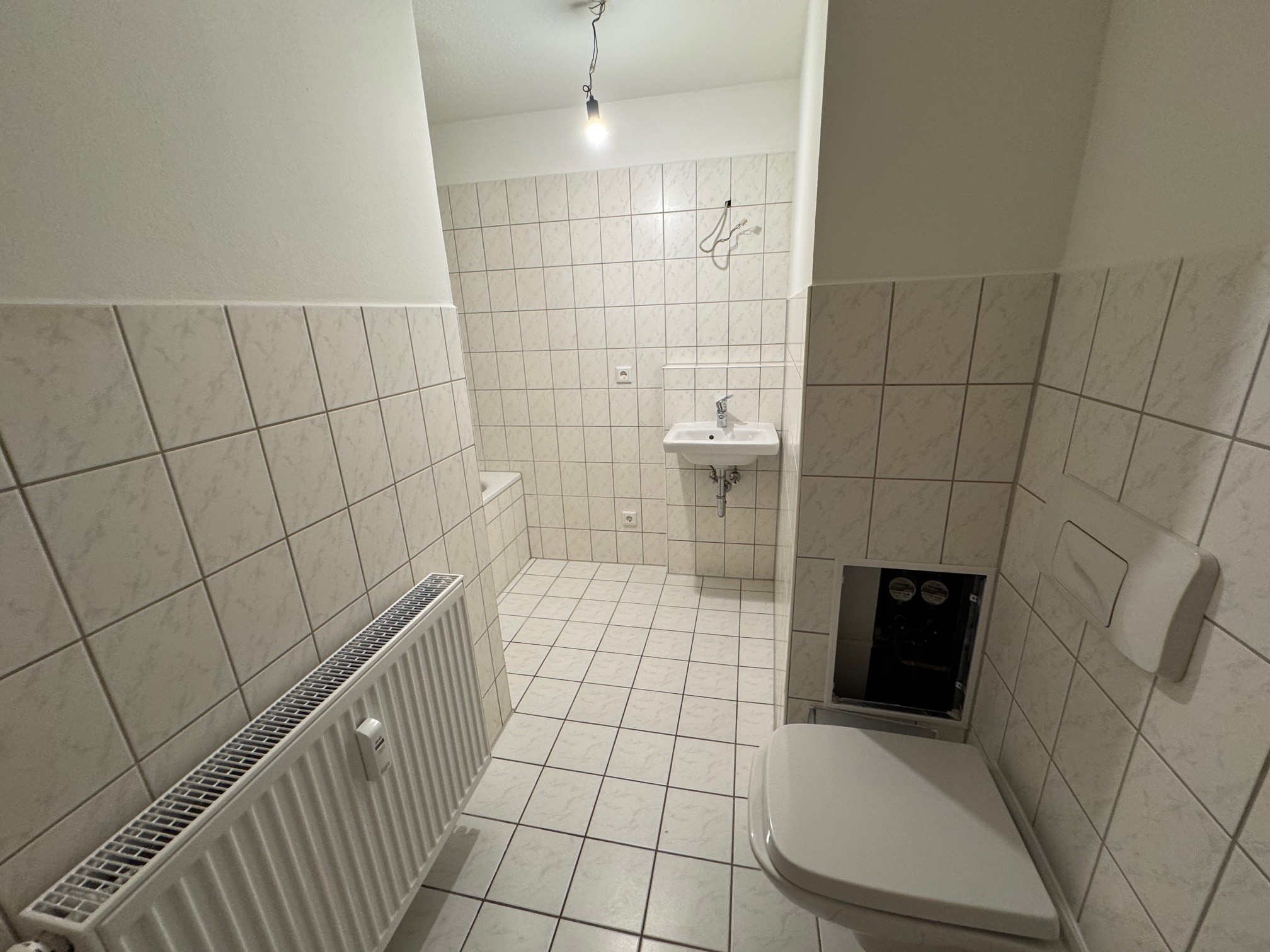 Die Schlaf- und Wohnräume verfügen über pflegeleichte Laminatböden. Das Bad wurde in zeitlosem Design gefliest und mit Badewanne, Waschmaschinenanschluss und Sanitäranlagen ausgestattet.