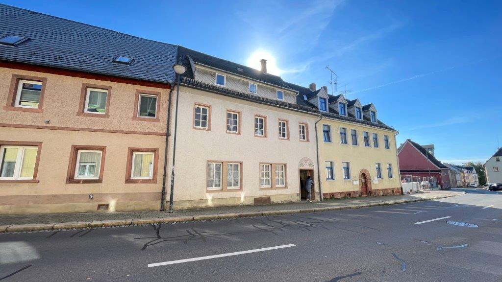 Das zum Verkauf stehende Zweifamilienhaus mit Gewerbeeinheit im Erdgeschoss befindet sich im Zentrum von Geringswalde.